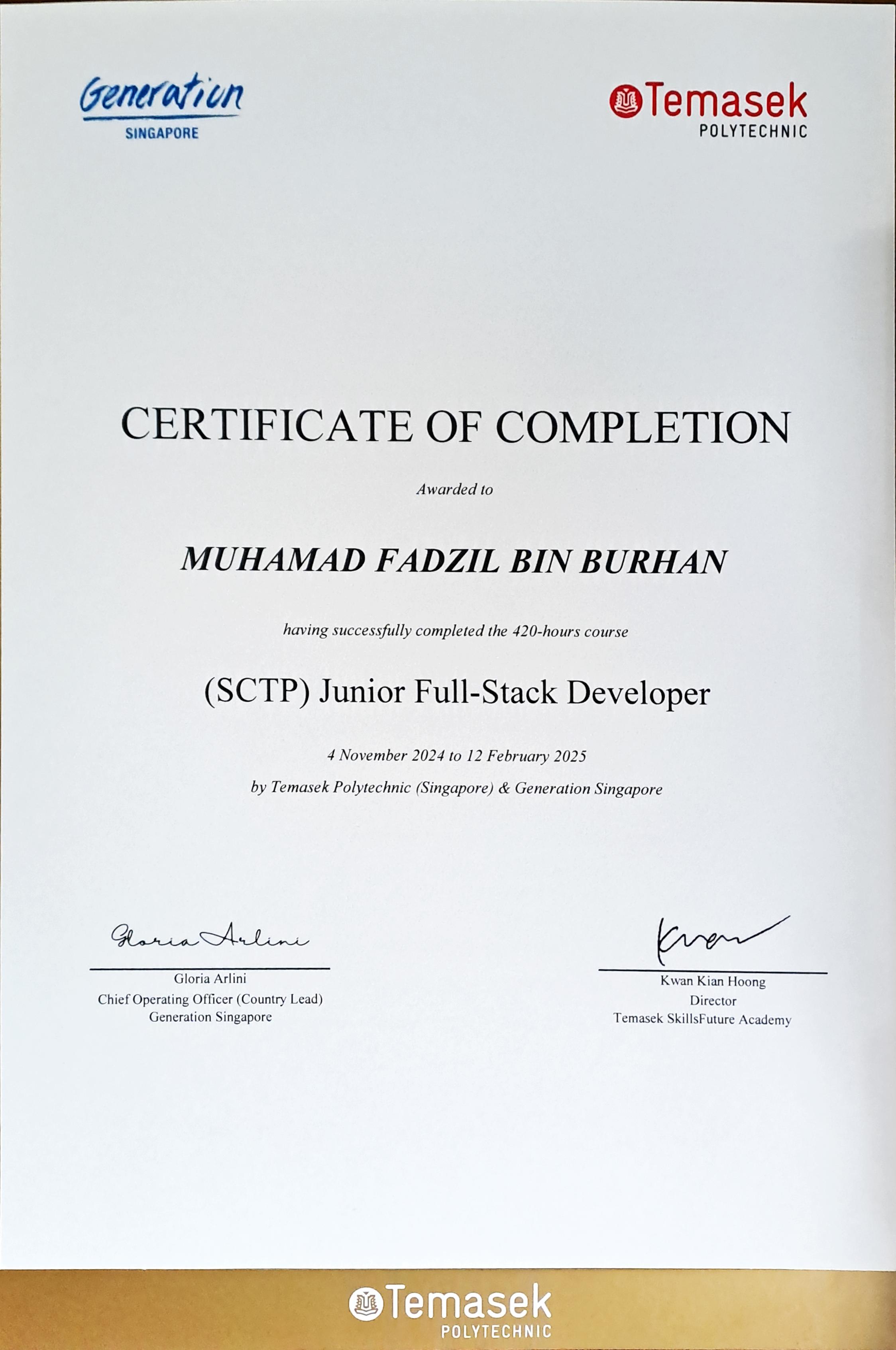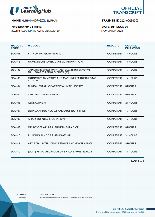 A versatile mid-career professional transitioning from ICT Sales and Marketing career into Software Development. Recently completed a 12-week Junior Full-Stack Developer Programme with Temasek Polytechnic & Generation Singapore and a 16-week Associate AI Machine Learning Developer Programme with NTUC Learning Hub & Xaltius Academy.